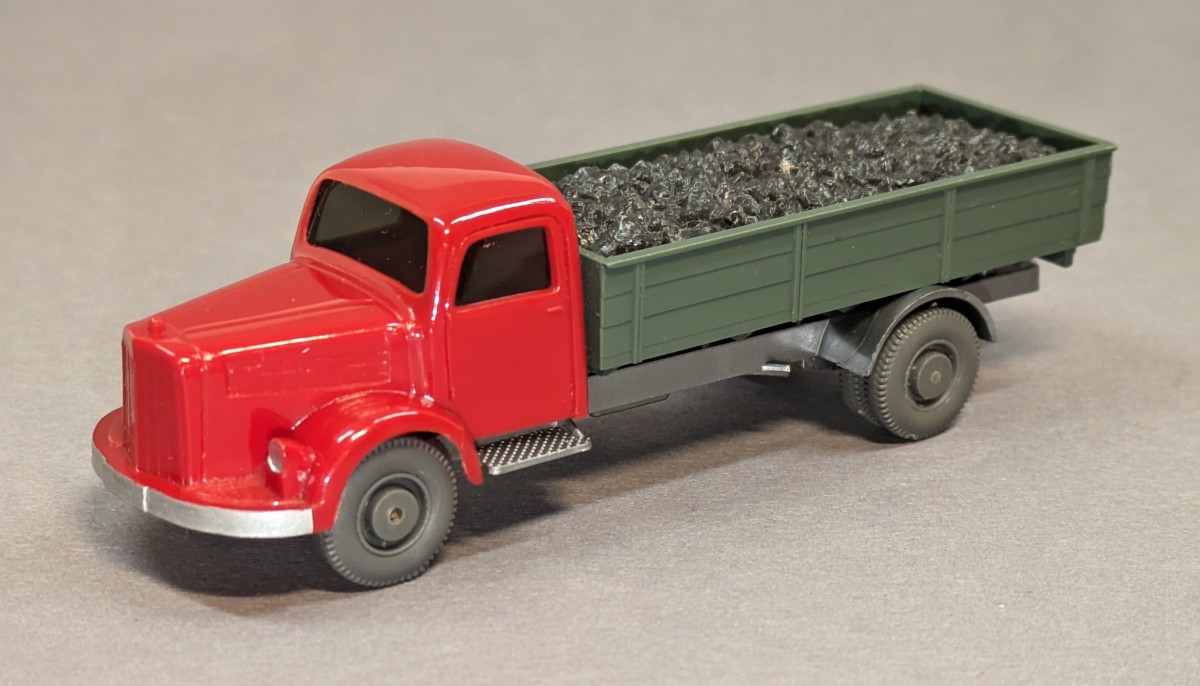 Nr.0430 MB L 3500 Pritsche mit Kohleladung, rot/dunkelresedagrün/Chassis silbern (609/1 C) 130,00 € 0,00 €