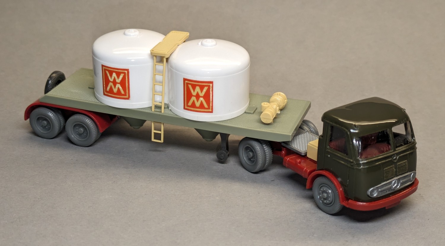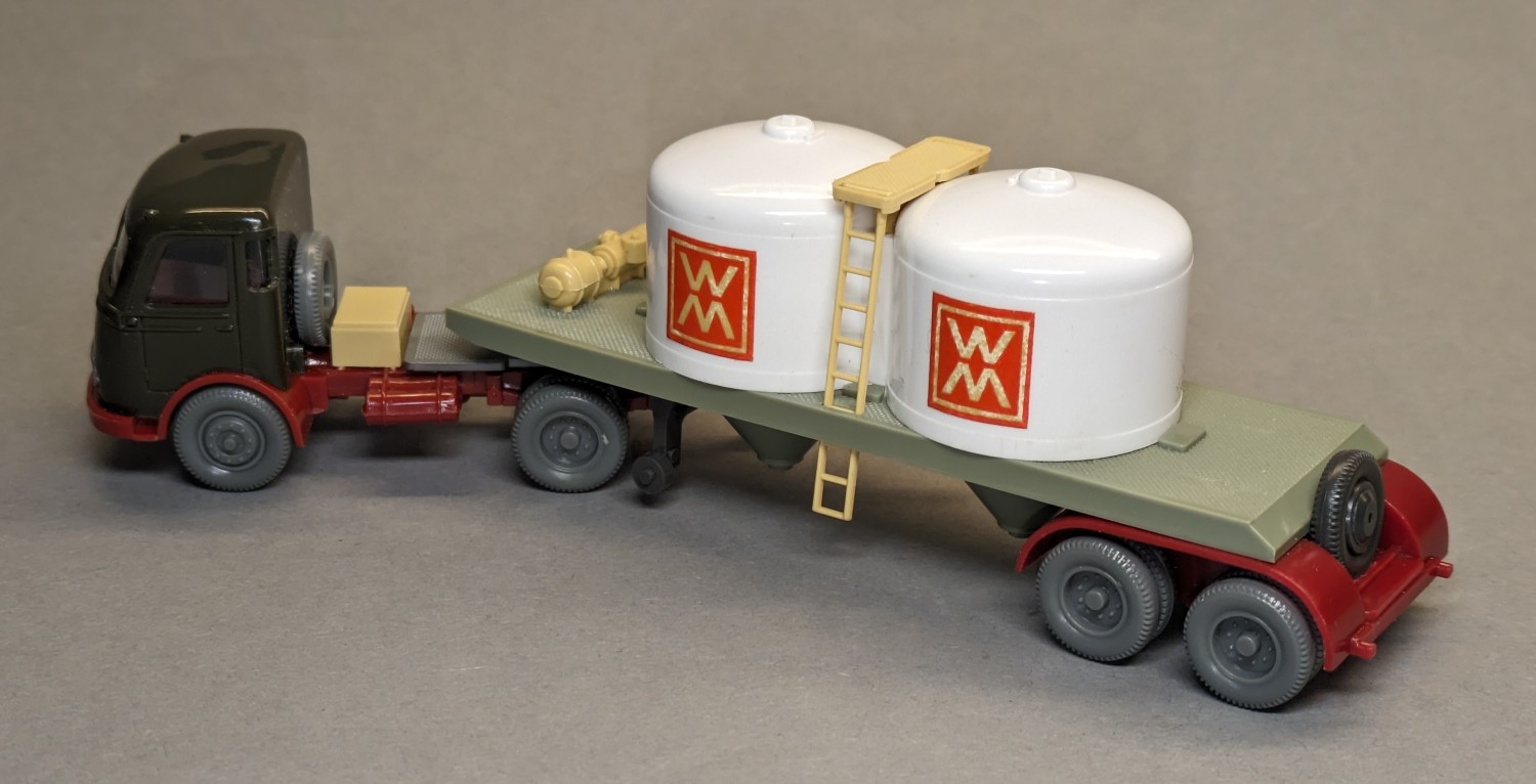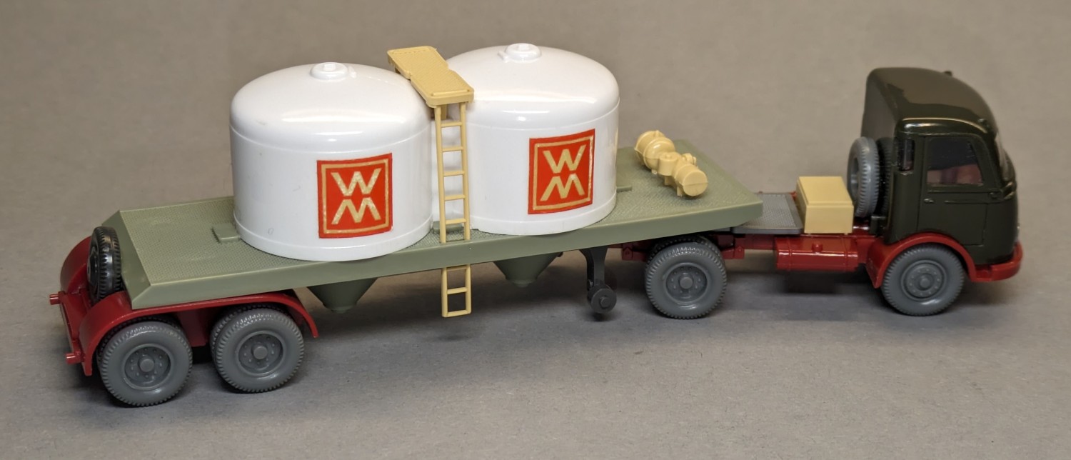 - Auflieger hellgraugrün, Radlauf weinrot, Stützrollen anthrazit(!)