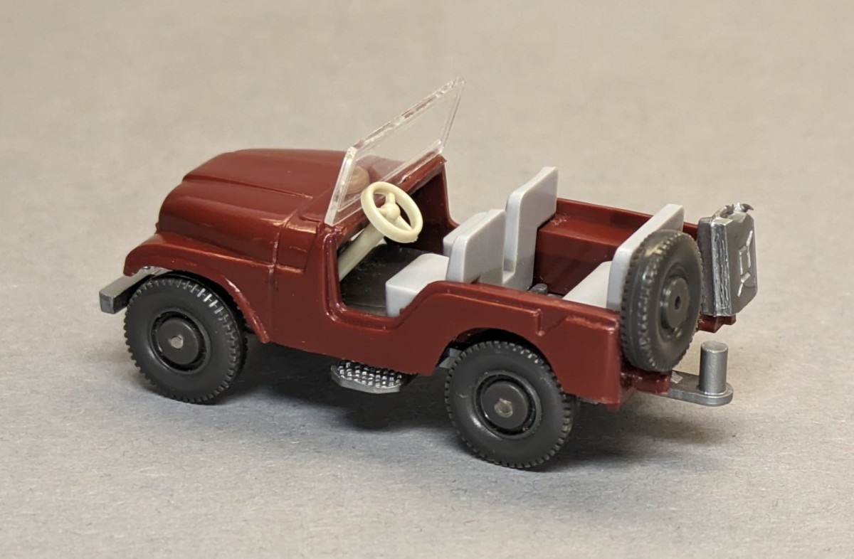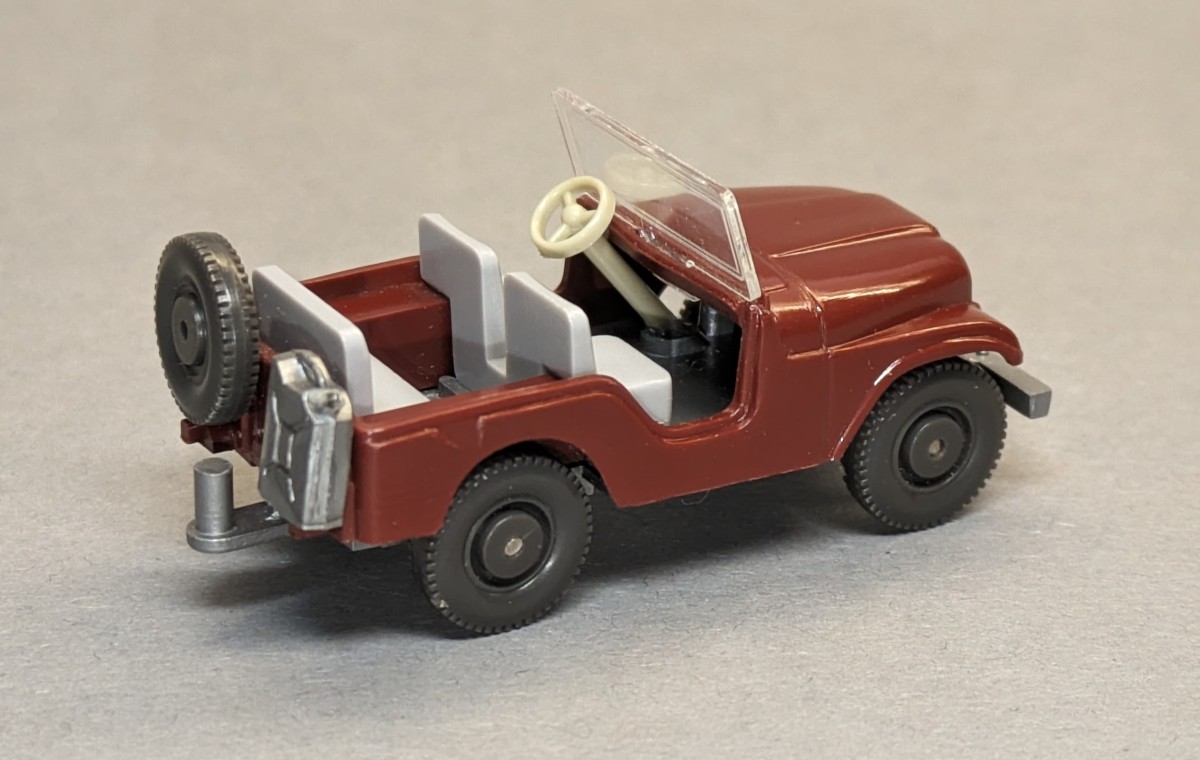 - braunrot, Sitze lichtgrau, Chassis silbern- Chassisprägung nur "WM"- mit anthrazitfarbenen Scheibenrädern- komplett unbemalt- garantierte Originalität (Auslandslieferung)- GK 11/2 BcNEUWERTIGER ZUSTAND