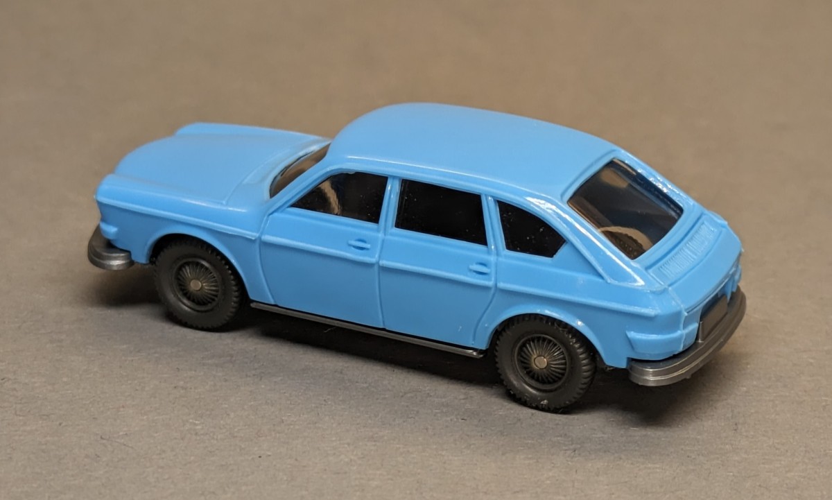 - hellblau- mit Doppelscheinwerfern- VW-Emblem stirnseitig- ohne Inneneinrichtung- getönte Verglasung- ohne Zughaken (wieder aus Stahlform entfernt)- unbemalt und ungesilberte Speichenräder- GK 46a/3 A- etwa 1980NEUWERTIGER ZUSTAND