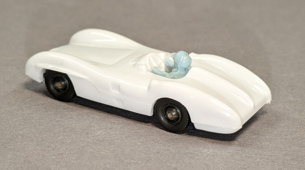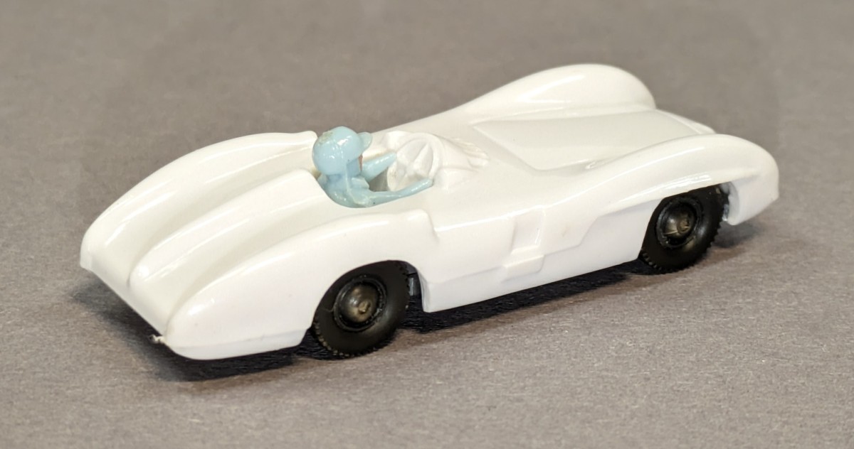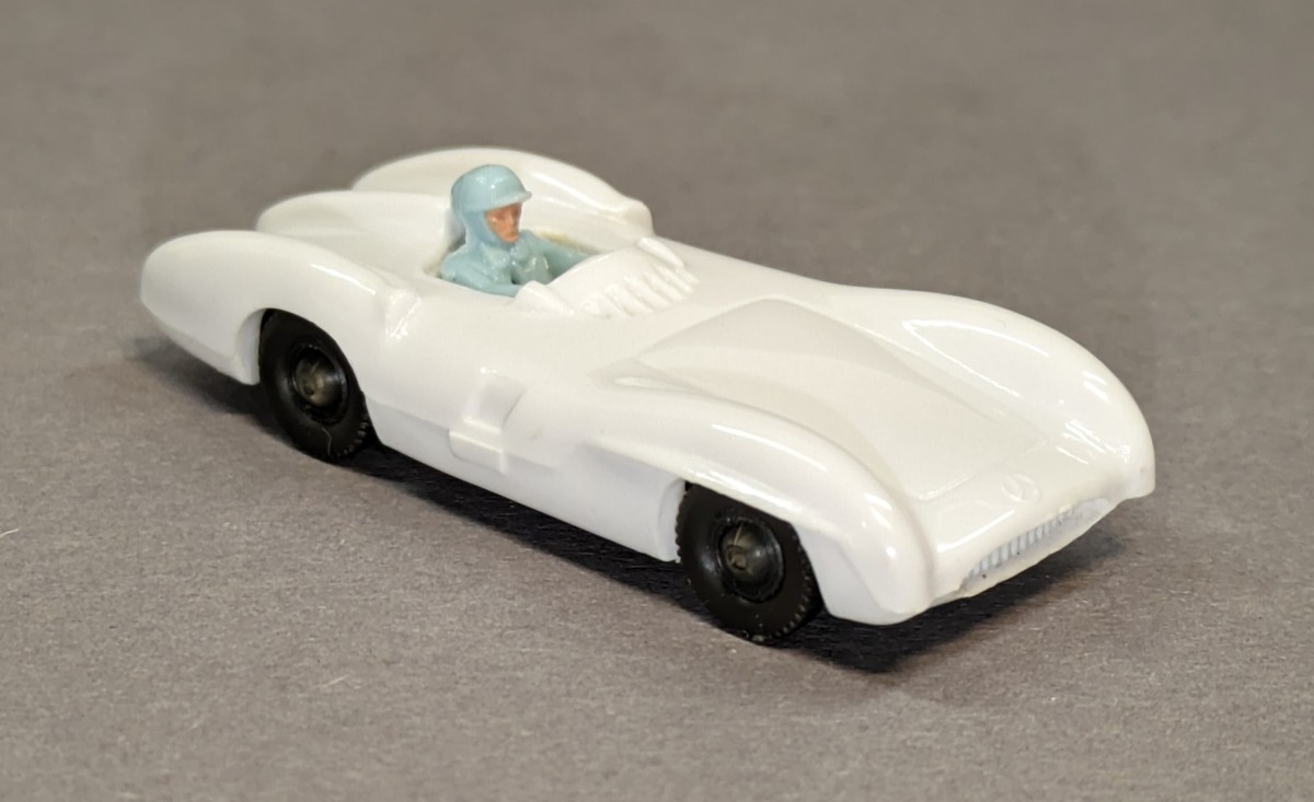 - weiß, Fahrer wässrigblau- zweite Form mit fein gerilltem Grill- Chassisprägung mit "MERCEDES RENNWAGEN"- anthrazitfarbene Pkw-Räder mit gerader Lauffläche- GK 240/3 ANEUWERTIGER ZUSTAND