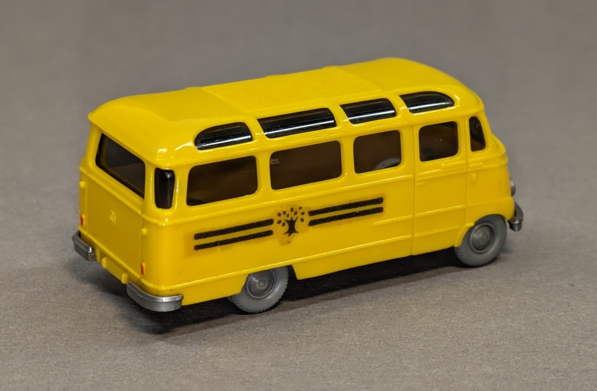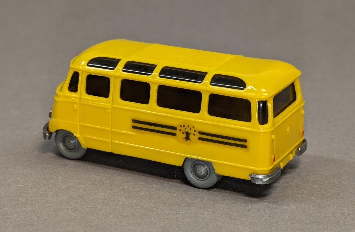 - (dunkles) gelb, Chassis silbern- Abziehbildbeschriftung mit schwarzer Grafik- gering erhabene Rückleuchten- mit grau getönter Verglasung- nur Rückleuchten bemalt- mit grauen Rädern- GK 260/5 DNEUWERTIGER ZUSTAND