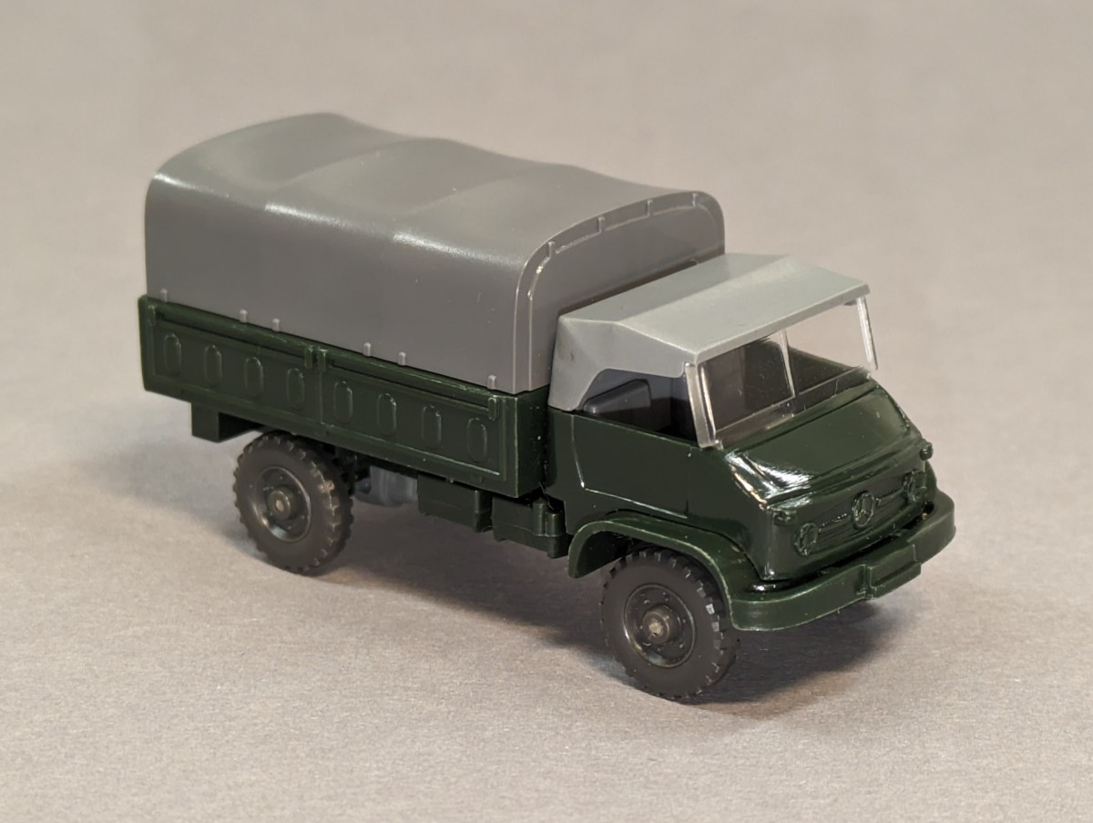 - tannengrün, Verdeck platingrau, Plane basaltgrau- lichtgraue Pritscheneinlage- mit Chassisprägung "GERMANY"- GK 363/5 BfNEUWERTIGER ZUSTAND