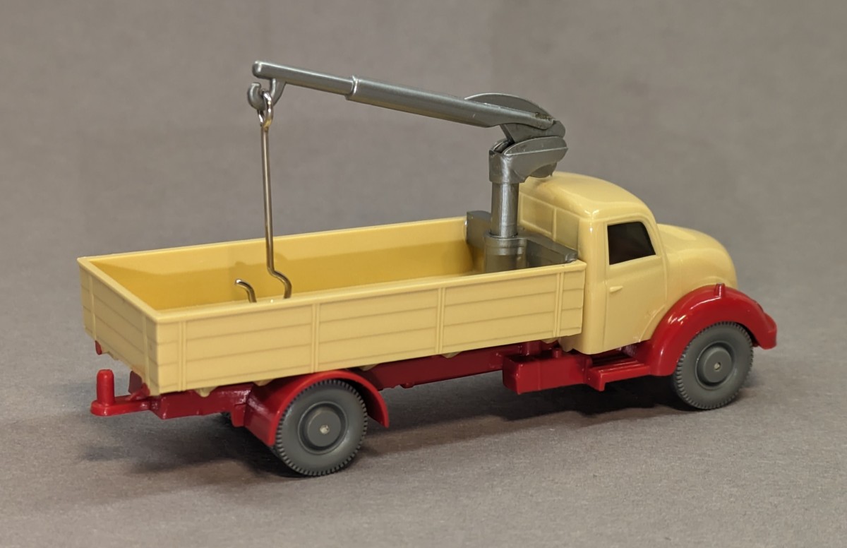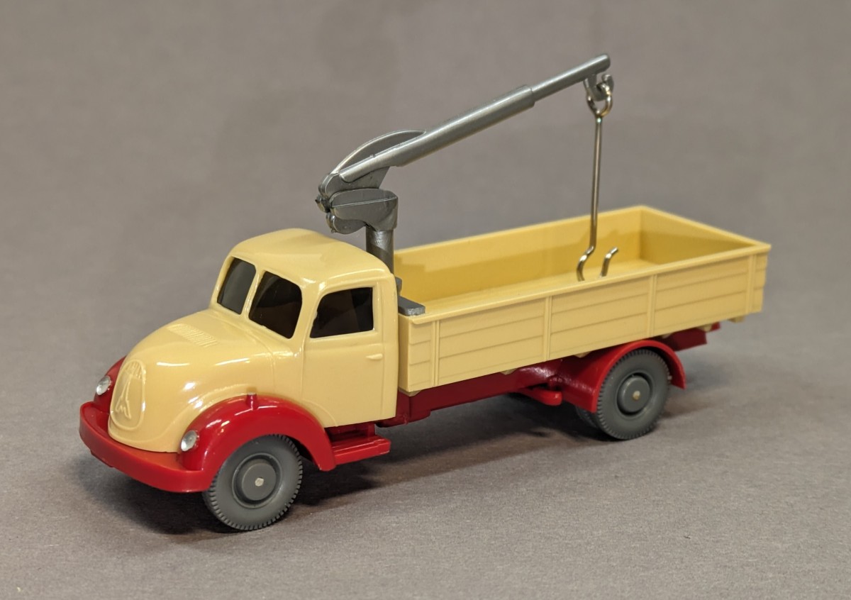 - hellbeige, Chassis rot- Stoßstange ohne stilisierte Kupplung- Pritsche mit einteiligem Nummernschild- mit großen grauen Scheibenrädern- Scheinwerfer, Blinker und Rückleuchten bemalt- GK 426/3 B- etwa 1964/65NEUWERTIGER ZUSTAND