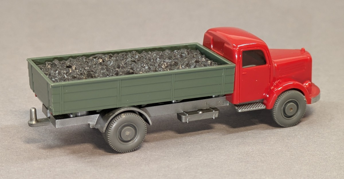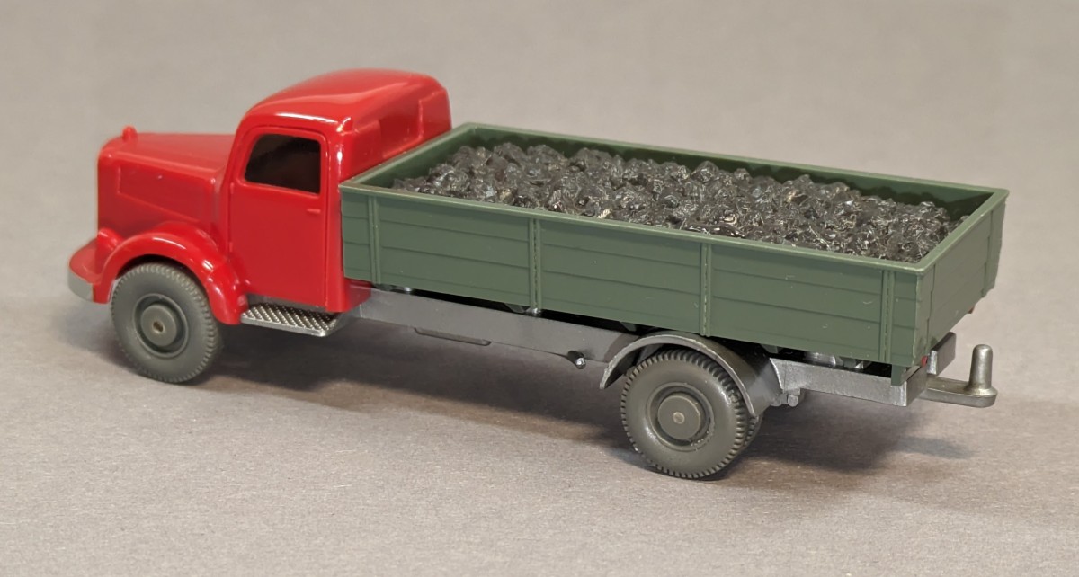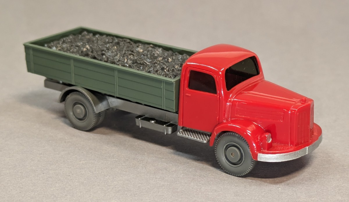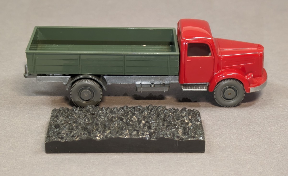 - Kabine und Chassis rot, Pritsche dunkelresedagrün