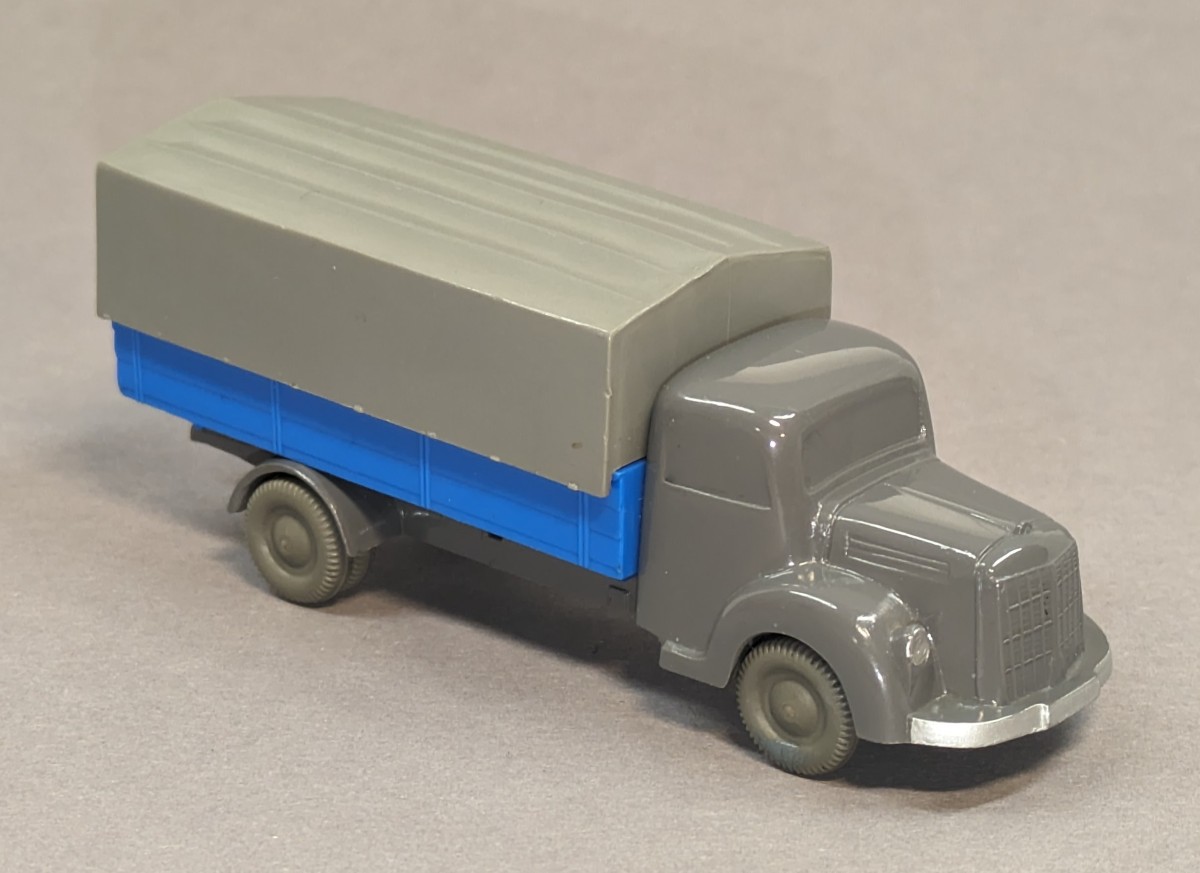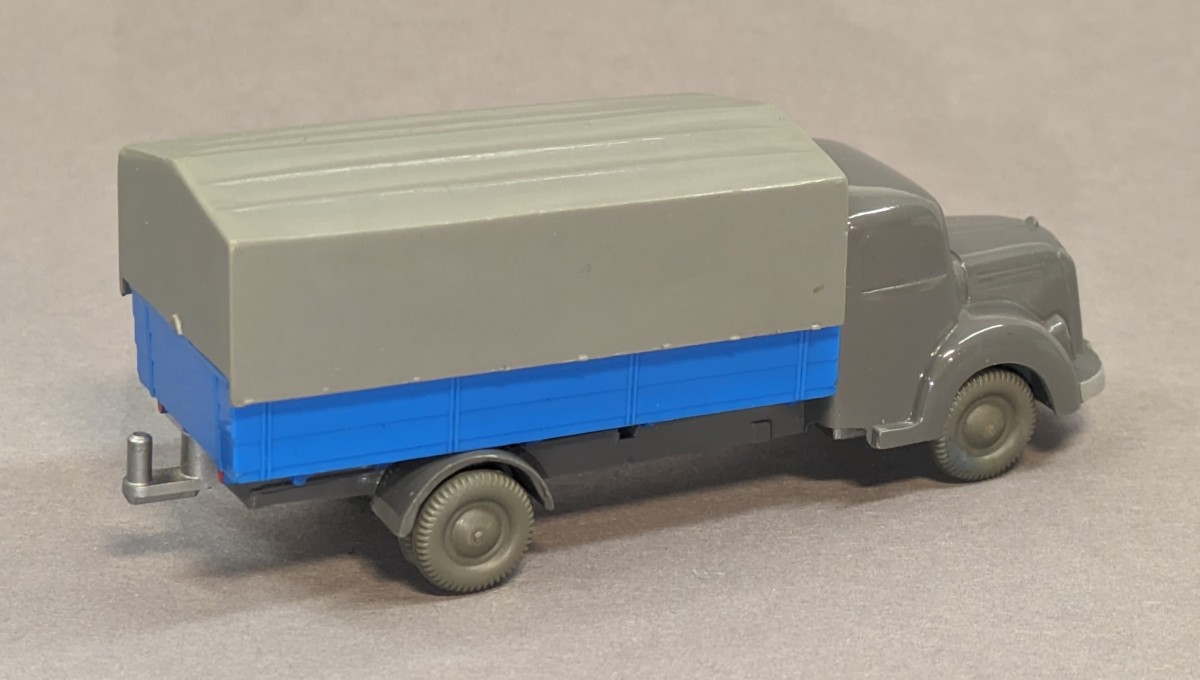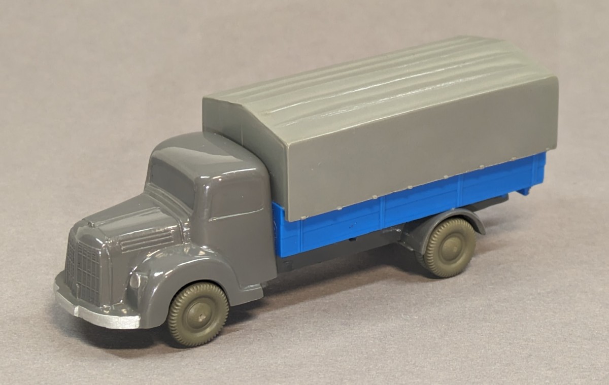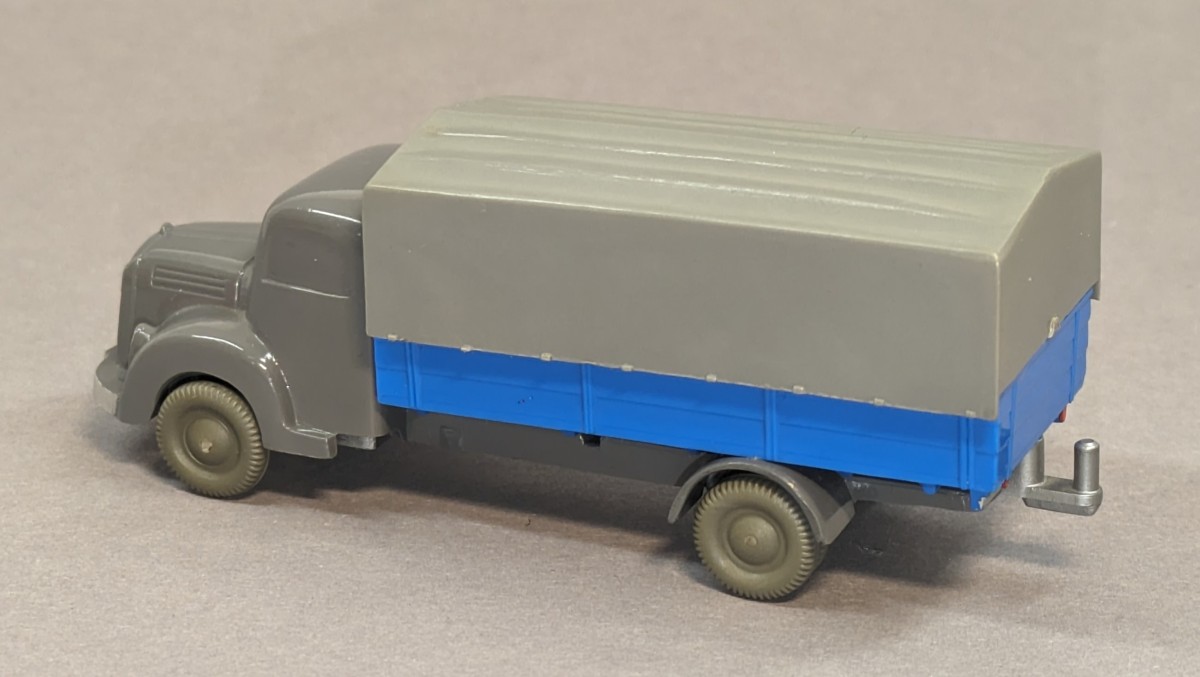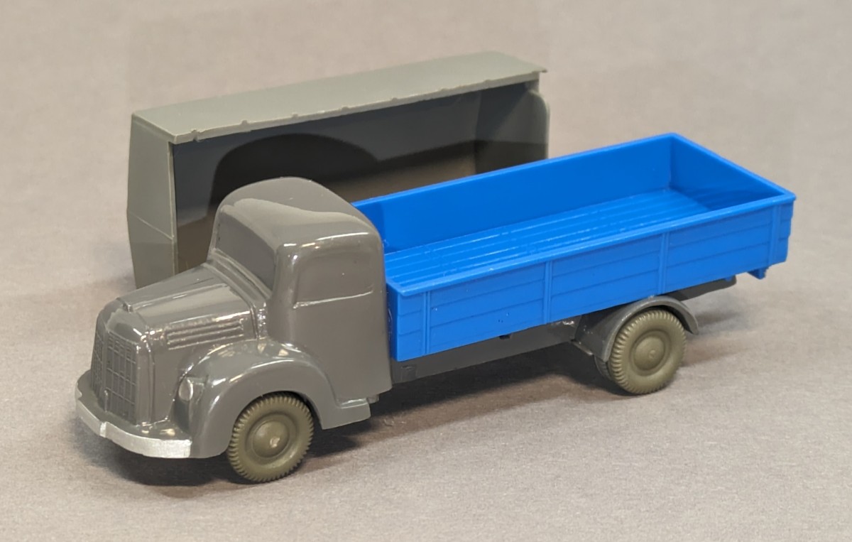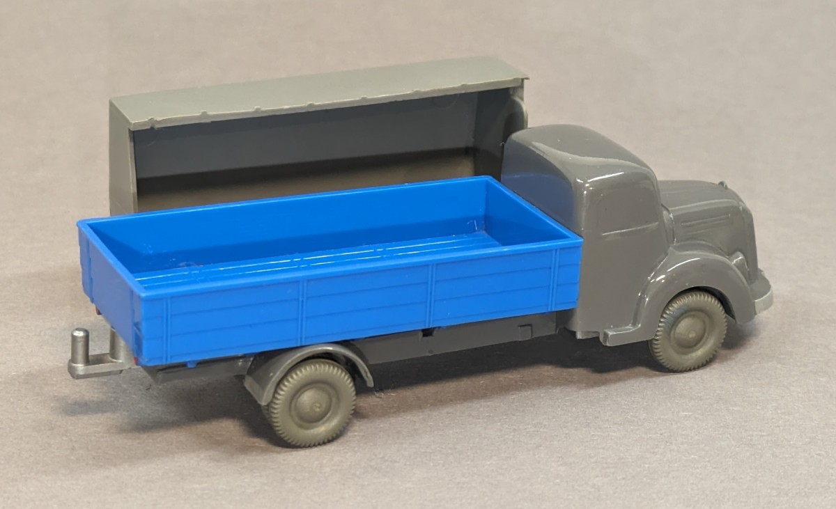- basaltgrau, Pritsche himmelblau- mit neuer strukturierter Pritsche und eingesetztem silbernen Zughaken- garantierte Originalität- mit Zubehör-Plane- GK 450/? (Modellvariante seinerzeit nicht bekannt)- etwa 1959/60NEUWERTIGER ZUSTAND