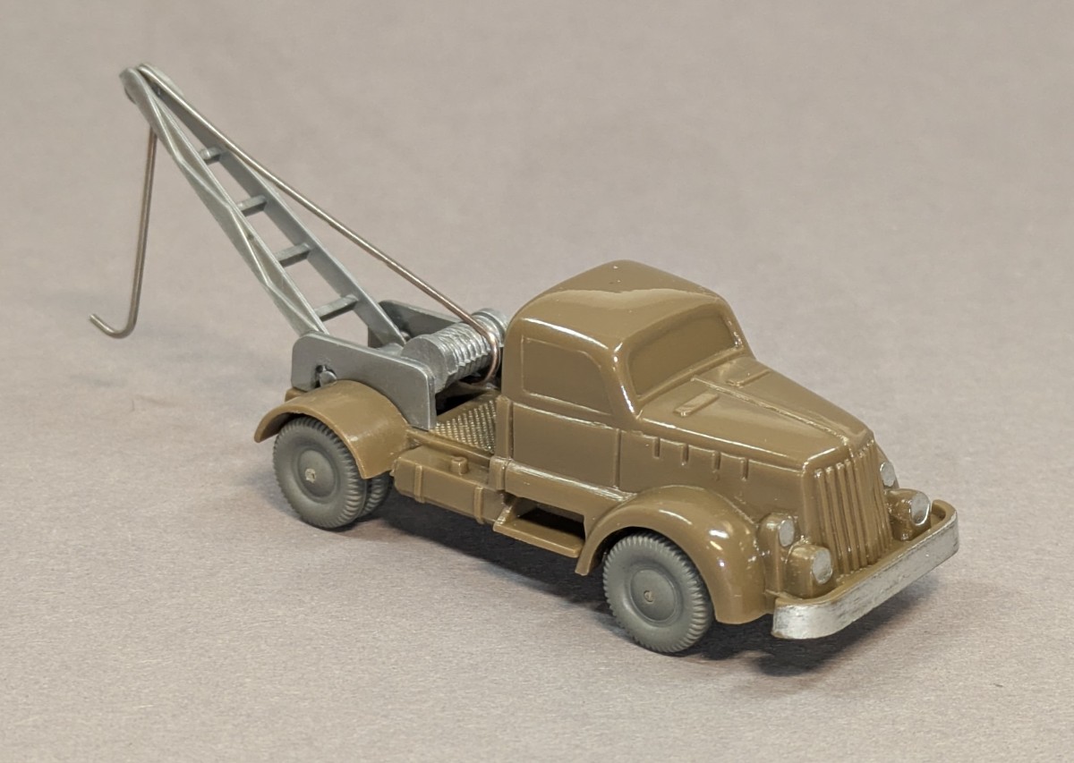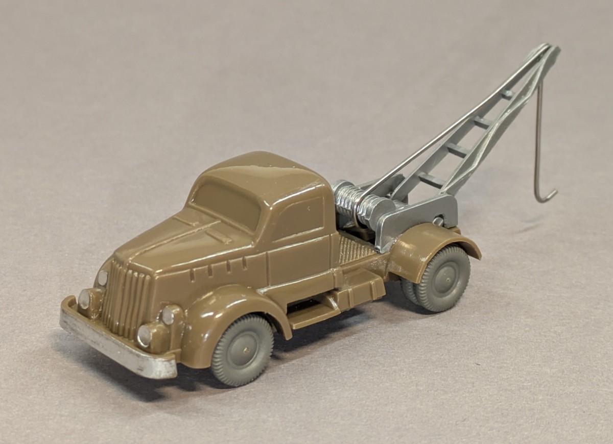 - komplett blassbraun, Ausleger silbern- mit originalem Drahthaken- profilierte Standardräder Lkw1 mit abgerundeter Lauffläche- GK 630/5 F- etwa 1955 bis 1958NEUWERTIGER ZUSTAND