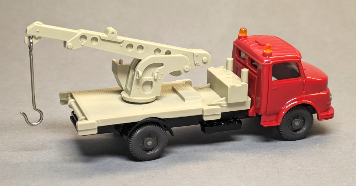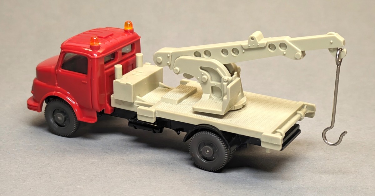 - Kabine rot, Aufbau hellgelbgrau, Chassis schwarz- Ausleger seitlich mit jeweils sechs kreisförmigen Vertiefungen- mit getönter Verglasung- GK 632/2NEUWERTIGER ZUSTAND